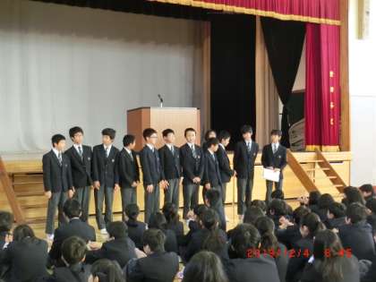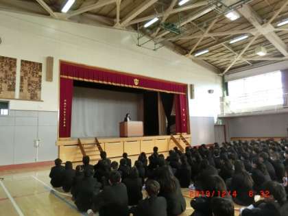 12月全校朝礼 12月4日(水) 公開日 2019/12/04 更新日 2019/12/04 できごと 校長講話では「ボランティア・マインド」についてお話をしました。11月号の学校便りでも紹介したお話しです。 野球部とI組の表彰も行いました。 いいね(0)