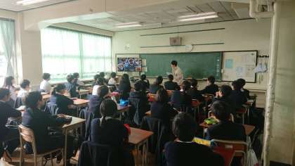 四人の留学生をお招きして、一年生で留学生のお話を聞く会を行いました。事前の学習では、国を調べたり、質問を考えたりしました。
