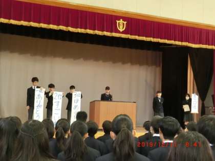 毎日の生活の中で、人の悪口を言わないようにすることや、「ありがとう」などいつも言える自分でありたいです。みんなが温かい言葉がけを意識してすることで、「優しさいっぱい弦巻中」に近づけます。