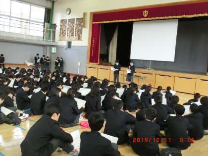 1年学年集会6 12月11日(水) 公開日 2019/12/12 更新日 2019/12/12 できごと 最後に、実行委員からの反省と丸山先生からお話がありました。 この移動教室で楽しかった思い出やすごく頑張ってできたことを大切にして、さらに良い学年集団を創ってください。期待しています。 いいね(0)