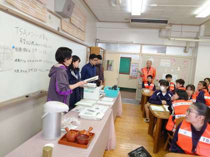 一時から避難所運営訓練が始まりました。開会式は樋山所長よりお話がありました。TSAのメンバーも三グループにわかれ、それぞれの班の活動のお手伝いをします。