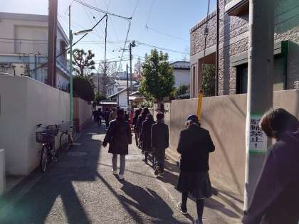 学校へ戻ります。ボロ市見学で学んだことを学校でまとめましょう。
