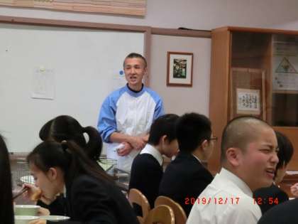 3年ランチルーム給食1 12月16日〜18日 公開日 2019/12/19 更新日 2019/12/19 できごと 3年生にとっては、最後のランチルーム給食です。毎日安全でおいしい給食を出してくださる調理員の平林チーフからお話を聞くのも最後になりました。 いいね(0)