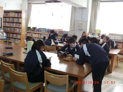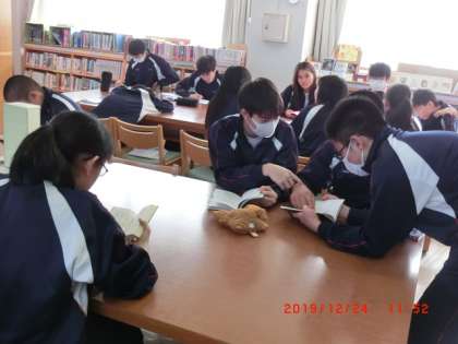 図書室で、読書の3年生のクラスもありました。自分の好きな本を手に取り、真剣に読んでいる生徒もいました。