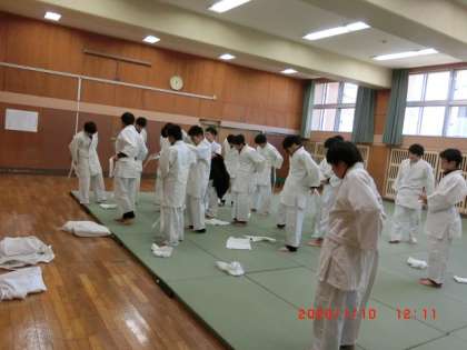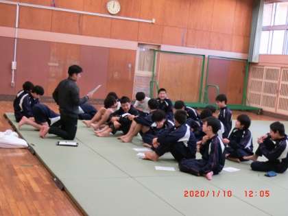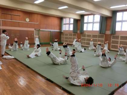 2年生の男子の体育は、柔道の事業がはじまりました。1年ぶりに柔道着を身に付け、気合が入っていました。