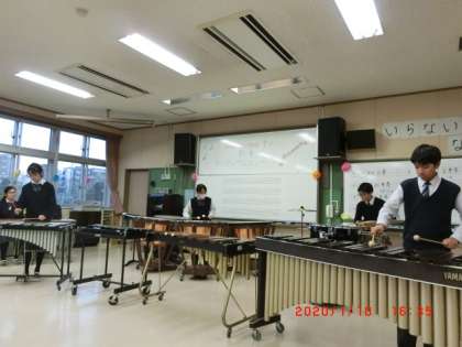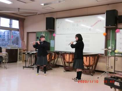 打楽器アンサンブルとフルートアンサンブルの演奏です。