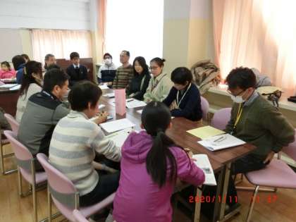 授業後の意見交換会では、各グループで話し合いを行い、報告をしました。最後に、岡田先生にご講評をいただきました。
