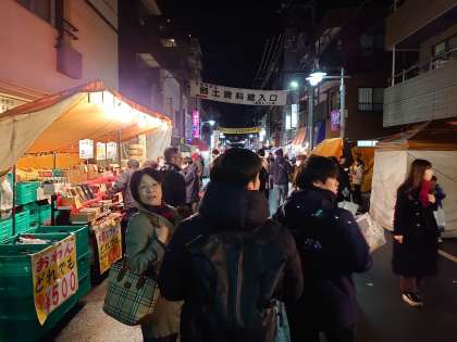 雨が降ったために、人通りは思ったほど多くなかったです。ボロ市を楽しむ子どもたちにも会いました。