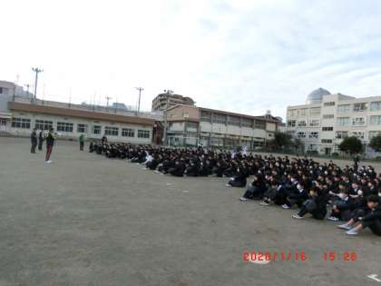 避難訓練 1月16日(木) 公開日 2020/01/17 更新日 2020/01/17 できごと 緊急避難速報による大きな地震が起こり、校内に残ることは危険であると判断したことを想定しての避難訓練を行いました。阪神淡路大震災から25年目です。記憶の継承が大きな課題となっています。 いいね(0)