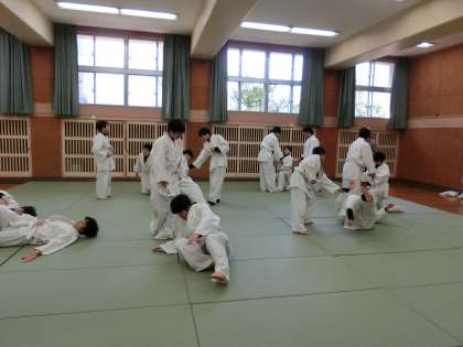 2年生男子。柔道の授業でした。怪我をしないための受け身の練習を交互にやっていました。