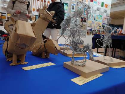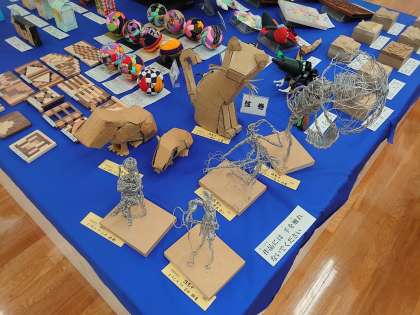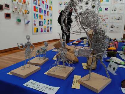 針金や段ボールで作った作品もありました。針金で作った人は、今にも動き出しそうでした。