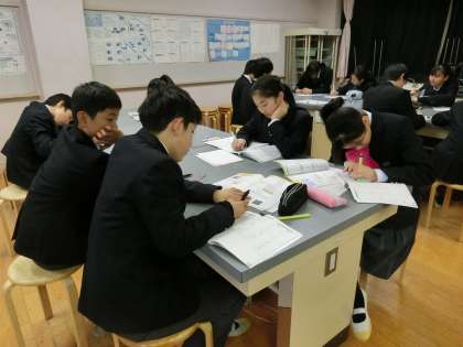 2年生の国語の授業では、原爆に関する文や詩を読んで、課題について考え、班で意見を交換してたり、クラスで共有したりしていました。詩について読みを深めてることができました。また、2年生の理科「雲をつるく実験」の考察をしていました。雲をつくる実験を見たかったです。