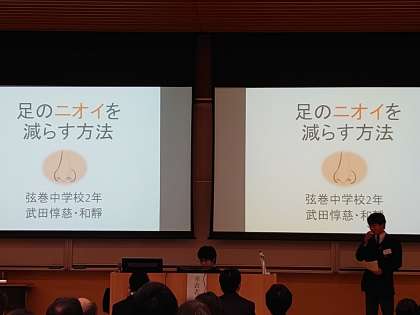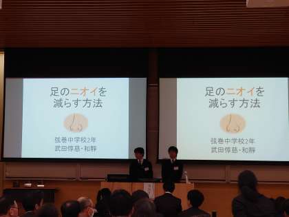 いよいよ発表です。身近な生活からテーマを見つけて、自分達の力で研究を進めた素晴らしい発表でした。諦めかけたときに、教育センターの先生に助けてもらったこと、ありがとうございました。
