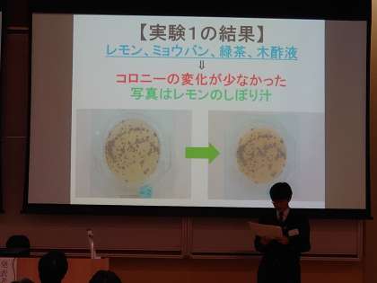 足の匂いの原因物質を突き止め、匂いを出さないようにする方法を教えてもらいました。二人の研究はさらに続いていくのだと思います。飽くなき探究心をもってさらに、研究をすすめてください。