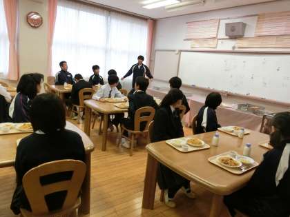 交流給食 1月27日(月) 公開日 2020/01/28 更新日 2020/01/28 できごと 2年生との最後の交流給食がはじまりました。 2年A組と2年I組の生徒と一緒にランチルームで給食を食べました。 楽しい時間を過ごすことができました。たくさんおかわりもしました。 最後にみんなで「はい、ポーズ!!」 いいね(0)