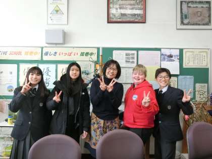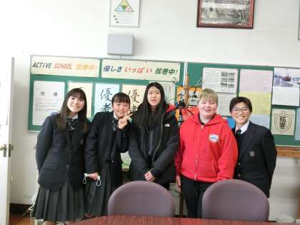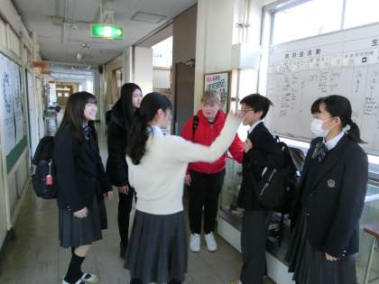 ウィニペグ市姉妹都市交流6 1月30日(木) 公開日 2020/01/31 更新日 2020/01/31 できごと 最後に校長室に2人がきてくれました。少しお話ををして、記念写真を撮りました。廊下にでたら、2人にお別れをしようと他の生徒とも最後の交流ができました。 いいね(0)