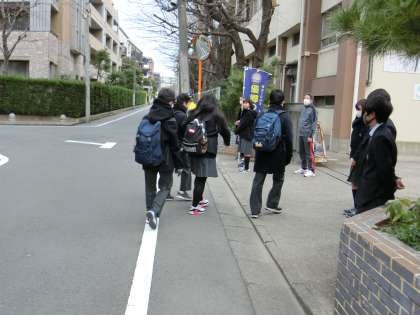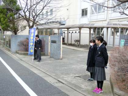 生徒会役員や専門委員会の委員長が、正門・東門にたって元気で明るい「あいさつ」をしてくれました。