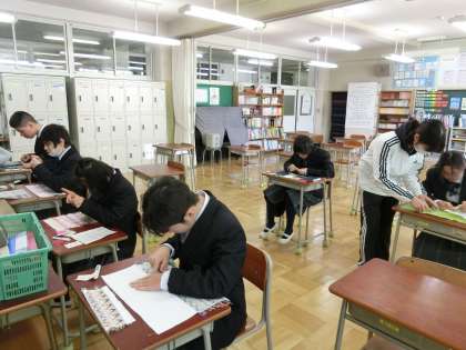 家庭科の時間は、スエーデン刺繍、技術の時間は、タイピングを頑張っています。