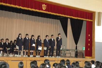 前期生徒総会 公開日 2011/05/16 更新日 2011/05/10 学校生活 5月9日前期生徒総会が行われました。生徒会委員会等の前期活動計画が承認されました。多くの質問・解答生徒による頼もしい議会を見て、今後の弦巻中学校のさらなる発展を確信しました。 いいね(0)