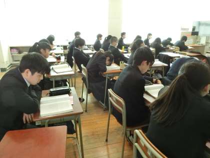 明日からテスト1週間前です。3年B組の国語の授業では、朗読発表会を行っていました。1・2年生は学年末考査に向けて頑張っています。3年生も都立入試がある人も最後の追い込みです。みんな頑張りましょう。