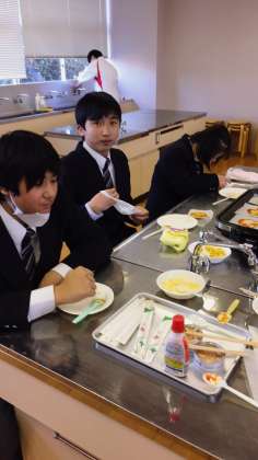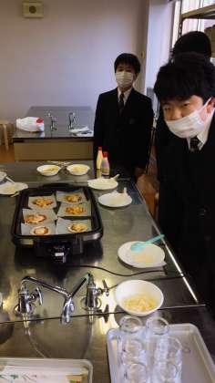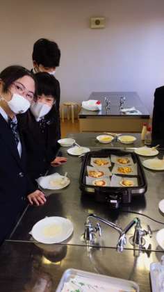 優I部では、ホットプレートに餃子の皮を引いて、好きな具材をのせて簡単な調理をしました。