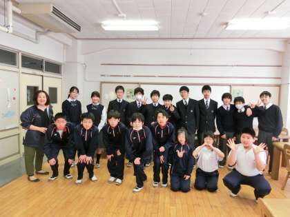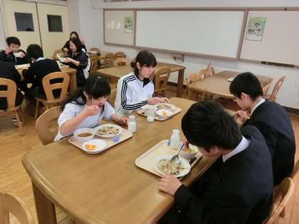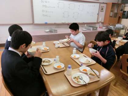 1年生の合同給食が最終日で、1年D組と行いました。あたたかな雰囲気の中、楽しい交流ができました。