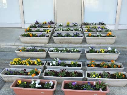 弦巻町会からいただきたパンジーとビオラの苗をプランターを植え、正門の昇降口に飾りました。これからどんどん成長していくのが楽しみです。ぜひ、見てください。