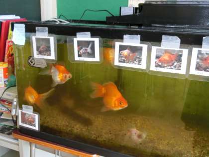 I組の金魚も元気です。支援員さんが作品の整理をしてくれています。早く返却できるといいです。