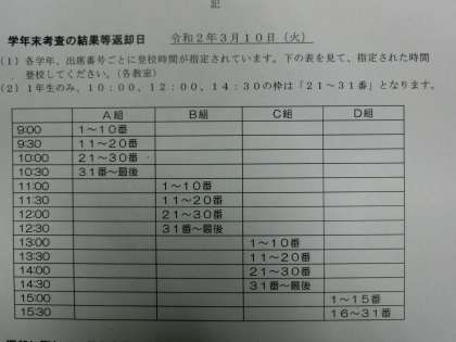 1.マスクをして登校してください。(ない人は大丈夫です)