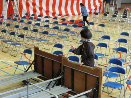 卒業式準備2 3月16日(月) 公開日 2020/03/16 更新日 2020/03/16 できごと 椅子並べ、式次第は本間先生が書いてくれました。みんなで協力して準備をしたので、あっいう間に終わりました。 いいね(0)