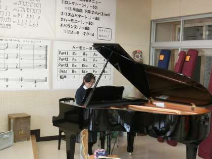 音楽室では、本当は式歌として3年生が歌うはずだった「友〜旅立ちの時〜」のピアノ演奏の録画をしました。卒業式当日は歌うことができないので、退場の曲として、流します。楽しみにしてください。