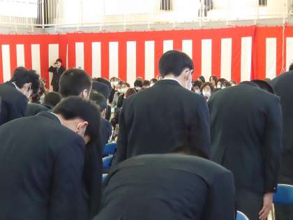 卒業式では、式に挑む堂々とした生徒たちの姿が見られました。練習はほとんどなしのぶっつけ本番です。