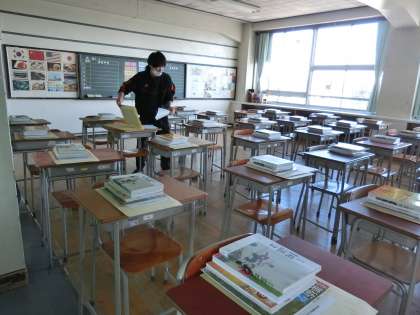 2・3年生の皆さんには、明日4月15日(水)8時45分より教科書を配布します。緊急事態宣言下での外出ですが、学校での配布にあたっては、子どもたちの安全第一に考え、ソーシャルディスタンスに配慮して、配布していきます。もらった後は速やかに下校になりますので、よろしくお願いします。