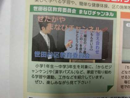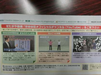 ぜひ、区報に目を通してください。また、せたがや動画「世田谷オフィシャルチャンネル」の紹介もありました。世田谷区教育委員会では「まなびチャンネル」を配信しています。
