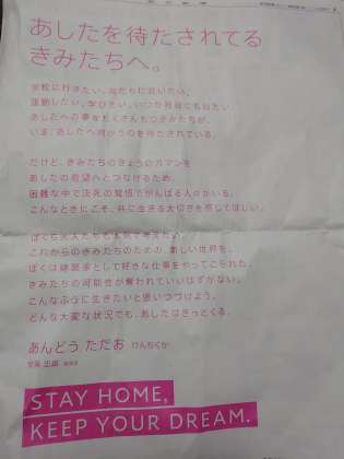 stayhome週間は終わりますが、まだまだ外出自粛、休校は続きます。『うちでできる12のこと』を弦中生みんなで共有したいなあ。