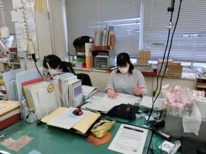 学校に勤務の先生方も在宅勤務の先生方も、皆さんが取り組んだ第1回目の学習プログラムの課題のチャックをしています。みんなが頑張った分、先生たちも頑張ります。次の課題も並行して作成しています。みんなの課題の取組状況や生活の記録や体力向上のための記録用紙等を見て、一人ひとりが今できることをしっかりと前向きに、一生懸命頑張っている姿が目に浮かびます。見終わった課題は、月曜日返すために、それぞれの机の上に積み上がっていきます。先生たちもお家の人も、いつもみんなの応援団です。