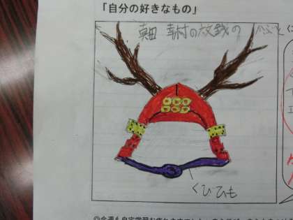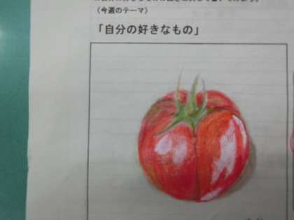 1年生のイラストのテーマは「自分のすきなもの」です。次回のテーマは「家でやったお手伝い」です。
