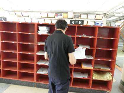 提出物を各教科等に分けています。先生方が、みんなの出した提出物を分けながら、家で頑張って取り組んでいる姿が想像していました。