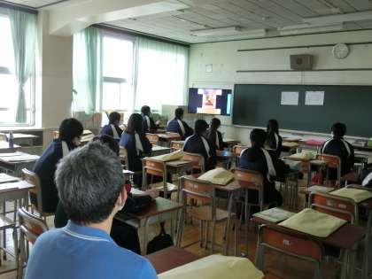 いよいよ始業式。生徒は各教室で、職員室からの放送で行いました。その後、栄養士の川村先生が作った手洗いの動画を見ました。そして、保健室の鈴木先生からの「新型コロナウイルスについて正しく知ろう」の授業をしてもらいました。