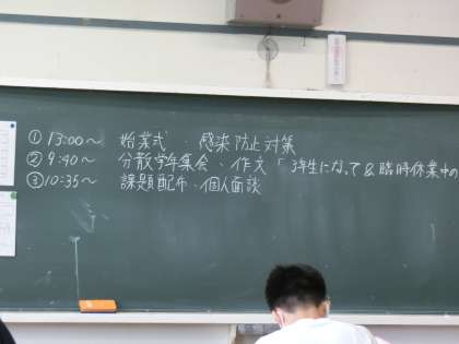 段階的分散登校(第1週目)7 6月1日(月) 公開日 2020/06/01 更新日 2020/06/01 できごと 残りの2時間は、担任の先生や学年の先生からの自己紹介や作文を書いたり、学習プログラムの課題に取り組みました。 いいね(0)