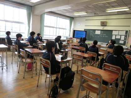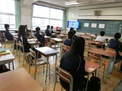 「新型コロナウイルス感染症を知ろう」の授業を真剣に受ける子どもたち