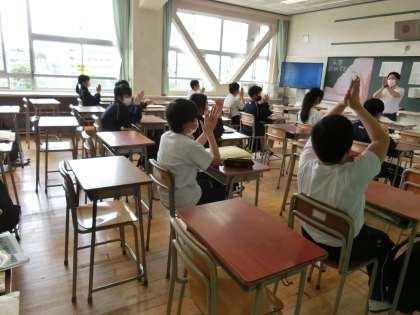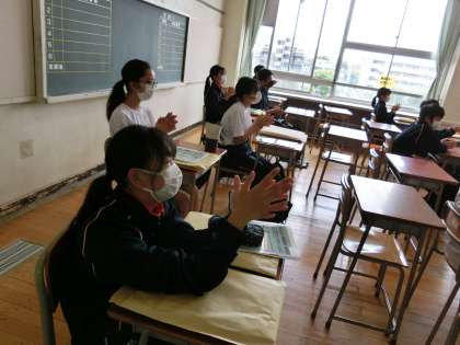 動画のとおり、C組では「エアー手洗い」もしてみました。