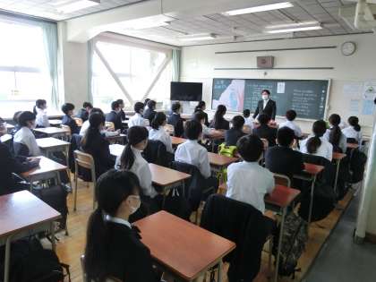 入学式直前の教室。新入生入場です。