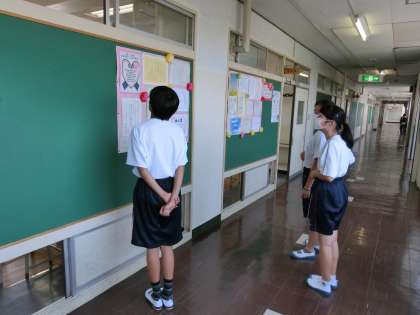 段階的分散登校(2週目)9 6月9日(火) 公開日 2020/06/09 更新日 2020/06/09 できごと 午後の部の1年生も図書ガイダンスのあと、図書室に行って本を借りたり、休み時間に廊下で祝電の貼ってある掲示物を見ている生徒も見られました。 いいね(0)