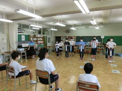 I組対面式(2年生と)5 6月11日(木) 公開日 2020/06/11 更新日 2020/06/11 できごと 校歌紹介では、感染症予防対策のため、I組の生の歌声を聴いてもらうことはできませんでしたが、歌詞を分かってもらうような工夫をしました。締めくくりの終わりの言葉では、「分からないことは何でも聞いてください」と2年生の代表の優しい言葉が残りました。 明日は、3年生徒の対面式。楽しみですね。 いいね(0)