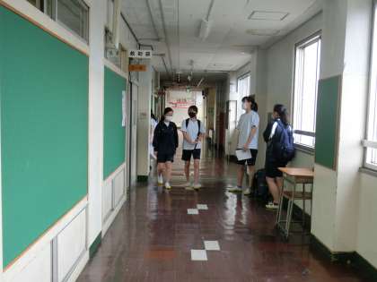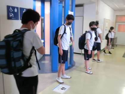 午後の授業もみんな頑張っていました。昇降口でもソーシャルディスタンスを!!