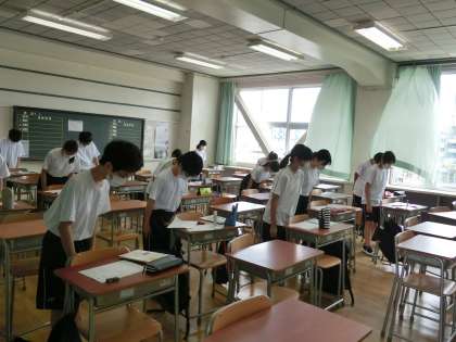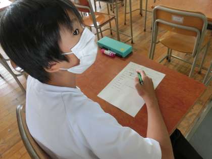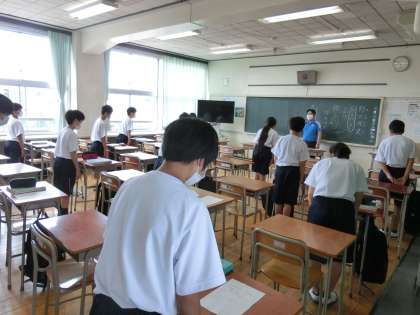 分散登校(3週目)2 6月16日(火) 公開日 2020/06/16 更新日 2020/06/16 できごと 授業もはじまり、いろいろな授業ガイダンスを聞いて、1年生は、中学生を実感していますか。毎時間、授業は礼にはじまり礼に終わります。 いいね(0)