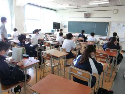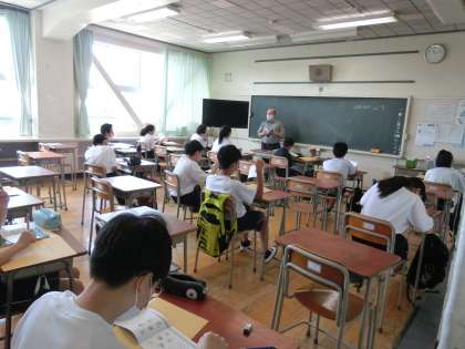英語はALTの先生が来ています。国語は、ラジオで「続岳物語」を聞いています。