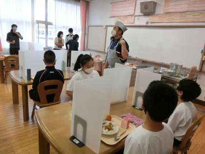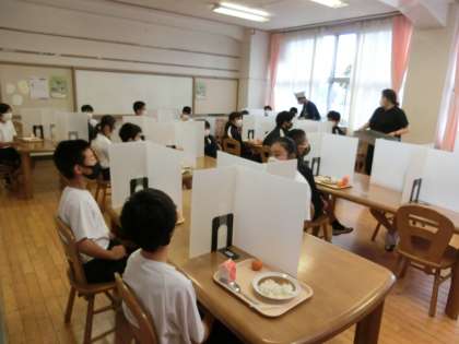 I組もランチルームで給食です。