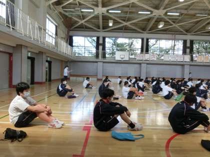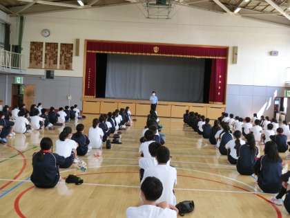 2年生学年集会2 6月29日(月) 公開日 2020/06/29 更新日 2020/06/29 できごと 生活指導部の沼田先生から、先週1週間の新しい生活様式でのみんなの様子のお話がありました。マスクや手洗い…、みんな協力して頑張っていました。楽しく安全に生活するための私たちが守るべき「学校でのディスタンス」のお願いを再度しました。 いいね(0)
